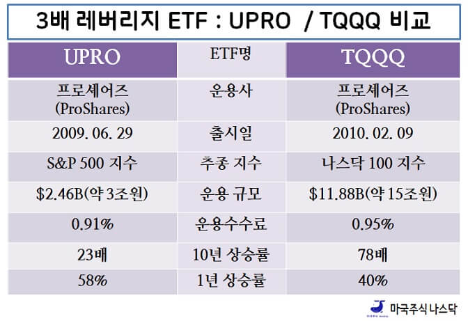 미국 레버리지 ETF S&P500 UPRO 나스닥100 TQQQ 비교