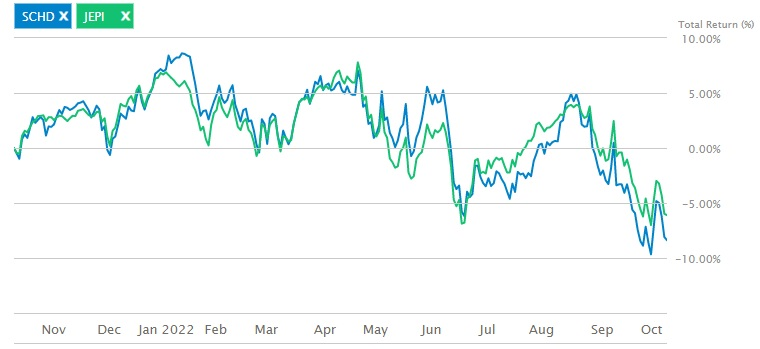 배당률은 2022년 기준 SCHD가 연평균 3.1%, JEPI가 8.3%로 JEPI가 월등히 앞서고 있다.