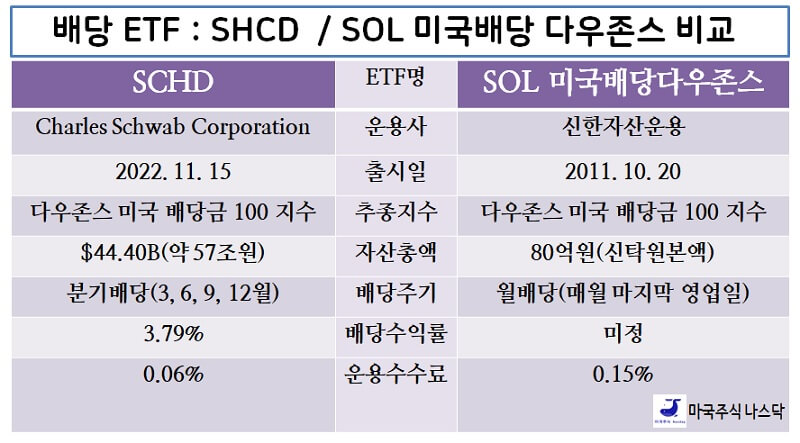 2. SCHD Vs. SOL 미국배당 다우존스 차이점 비교