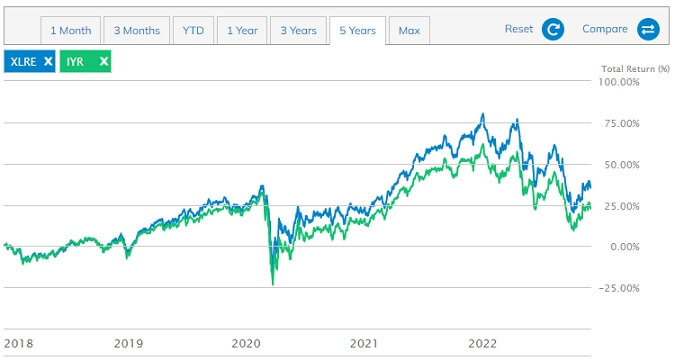 3. XLRE / IYR 비교