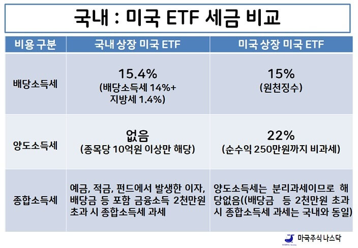 국내 상장 및 미국 상장 ETF 세금 비교