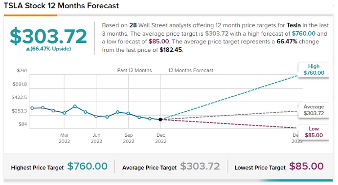 현재 월가를 비롯해 투자자들의 의견과 전망은 양분돼 있다. 위 그래프에서 보이듯 애널리스트들의 전망은 향후 1년 목표가에서 극명하게 나뉜다(출처: 팁랭크스). 애널리스트들의 평균 전망치는 303달러로 이전 수준에 근접한 수치를 나타내고 있다. 최고 전망치는 760달러로, 이는 현재 주가의 4배가 넘는다. 반면 최저 목표가는 85달러로, 현재 반 토막 난 주가에서도 또 반 토막이 나는 것을 의미한다.
